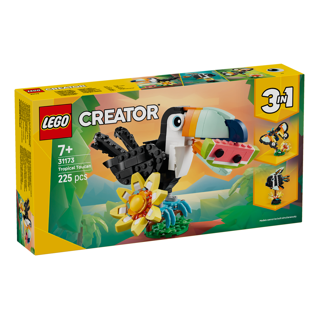 Mit dem LEGO Creator 3-in-1 Set „Wilde Tiere: Tropischer Tukan“ (31173) entdecken Kinder ab 7 Jahren die bunte Welt tropischer Tiere. Dieses kreative Konstruktionsspielzeug bietet drei verschiedene Bauoptionen in einem Set – für fantasievollen Spielspaß rund um LEGO Tiere.