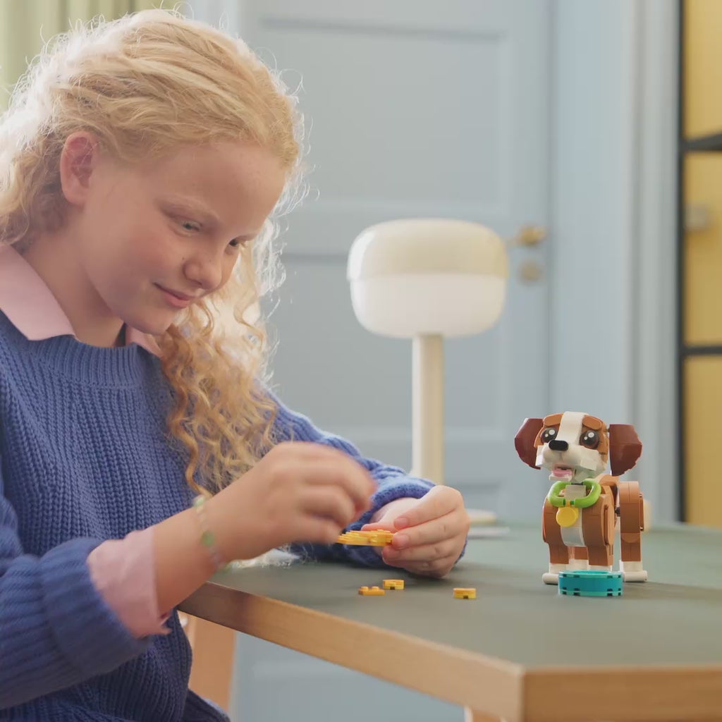LEGO Creator Niedliche Tiere: Verspielter Welpe (31382) ist ein liebevoll gestaltetes 3-in-1-Bauset, das Kinder ab 8 Jahren zu vielen kreativen Rollenspielen inspiriert. Dieses coole Konstruktionsspielzeug bietet Mädchen und Jungen gleich drei Bauoptionen mit denselben LEGO Steinen.
