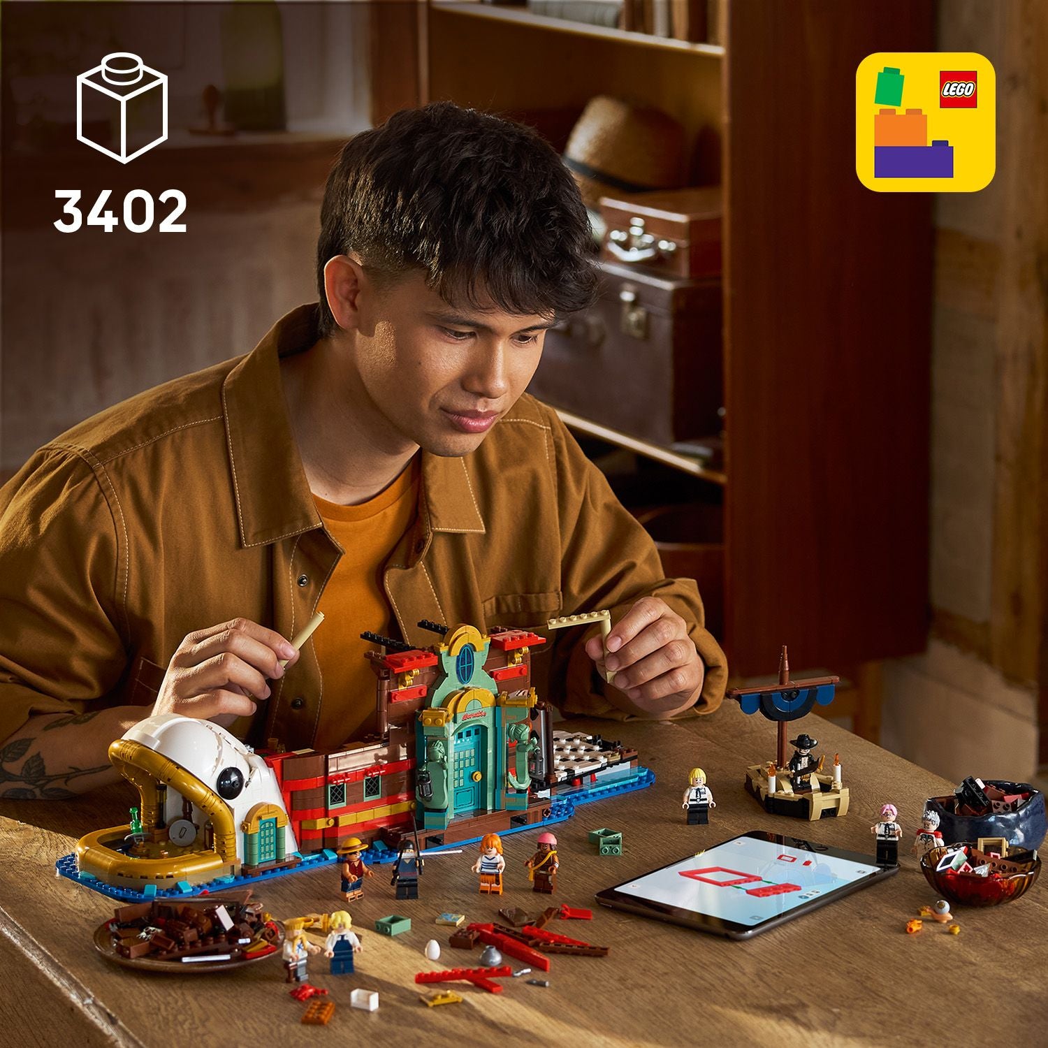 Das umfangreiche Set enthält viele zugängliche Räume wie Küche, Essbereich, Jeffs Quartier und die Schatzkammer. Mit 10 Minifiguren - darunter Ruffy, Sanji, Zorro, Nami, Jeff und Mihawk, lassen sich ikonische Szenen nachstellen. Authentisches Zubehör wie fünf Steckbriefe sowie klassische Elemente aus der Serie machen dieses LEGO ONE PIECE Set zu einem echten Highlight. Die LEGO Builder App bietet zusätzlich 3D-Ansichten und Bauhilfe.