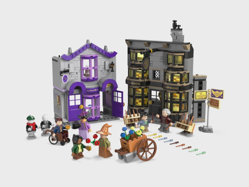 2 Läden aus der Winkelgasse: Dieses Zauberer-Spielzeug ist eine tolle Geschenkidee für Harry Potter Fans. Das Set beinhaltet detailgetreue LEGO Modelle von Ollivanders und Madam Malkins Läden für magische Abenteuer