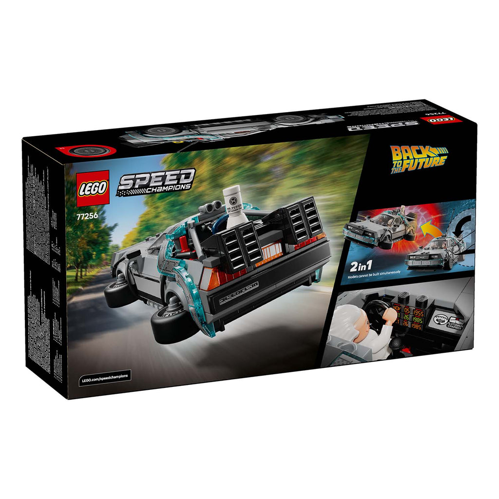 Die LEGO Speed Champions Zeitmaschine aus Zurück in die Zukunft (77256) ist ein Bauset, das Kinder ab 9 Jahren ein Modell bauen und ausstellen lässt – und mit dem Auto den Actionspaß aus den legendären Filmen nachgespielt werden kann. Das Spielzeugauto aus LEGO Steinen enthält viele der berühmten Details, die wir aus den beliebten Filmen kennen.