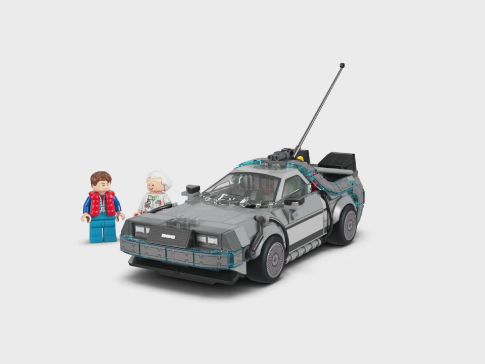 Marty McFly und Doc Brown begleiten das Set als LEGO Figuren und laden zu fantasievollen Spielszenen im kultigen Zeitreisemobil ein